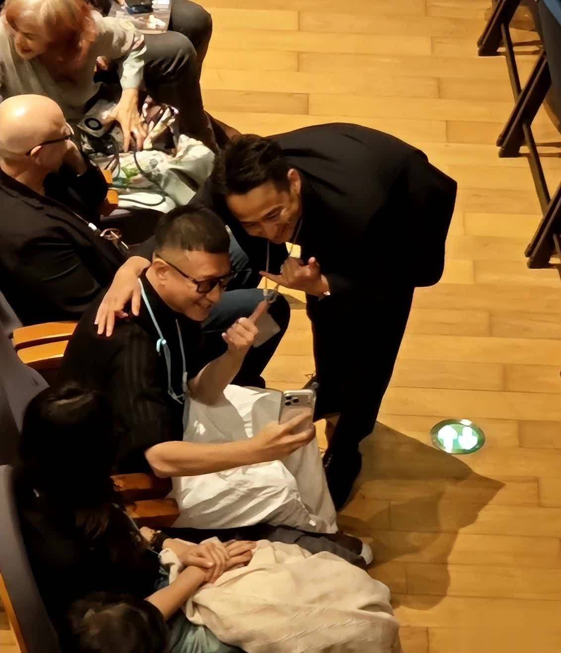 开幕式后,黄磊在台下与孙红雷合影,两人都笑的灿烂,这画面梦回当年的《极限挑战》。