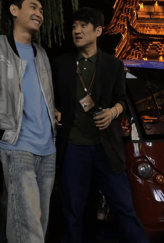 果然头围大不显身高,雷佳音在人群中依旧抢眼,穿着短裤、拖鞋,像是出门遛弯。