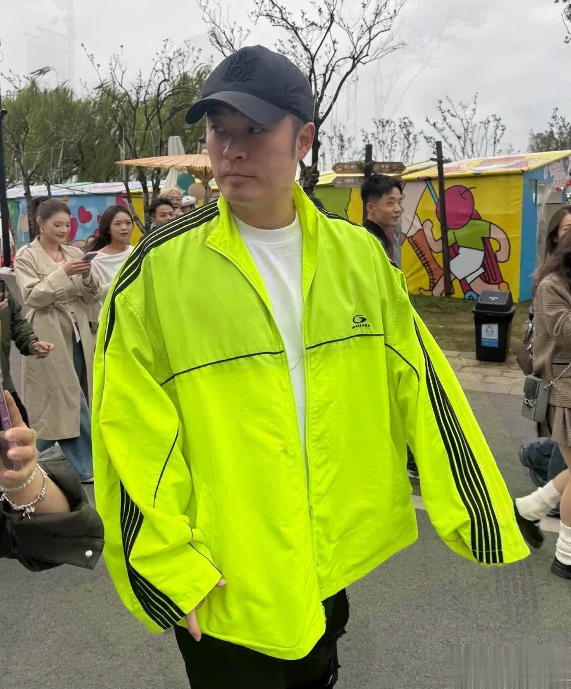 其他人都穿黑色想尽可能低调,而陈赫的荧光黄外套在人群中太扎眼。